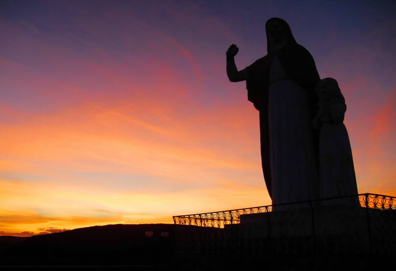 No alto da cidade de Serrinha, A estatua da Santa. O pôr do sol.